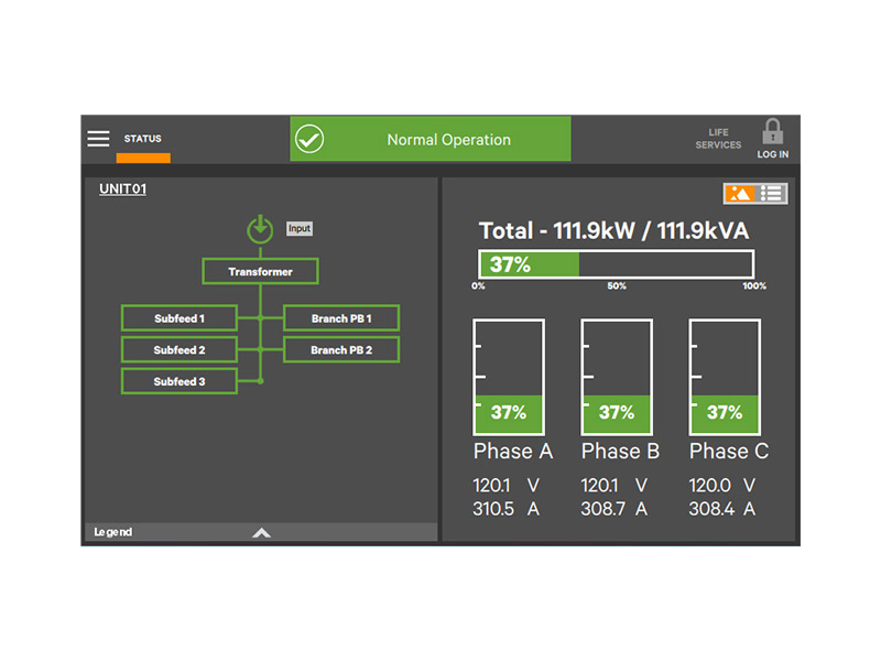 The Liebert TFX is a floor-mounted power distribution unit offering reliable single or two-stage power in small to mid-sized data centers, server rooms, network closets, and modular and containerized deployments. It is ideally suited for edge data centers and other remote facilities. The compact 36-inch-depth cabinet offers easy mobility. It fits through doors or in freight elevators, and can be installed next to walls or in corners or alcoves. The unit features an intelligent distribution power monitoring (DPM) system with a 9-inch color touchscreen display and an easy-to-program navigation menu to manage equipment loads. The power monitoring system integrates with your BMS to provide remote monitoring of critical power measurements and alarms. Isolated panelboards allow your engineers to safely perform onsite maintenance on low-voltage monitoring components without powering down the unit. The made-to-order PDU is customized according to your power needs, and shipped to you with panelboards and subfeeds configured to your specifications. The Liebert TFX accommodates both single and dual-stage distribution setups, and can be supplemented with Liebert® FLX expansion cabinets for additional power capacity.
