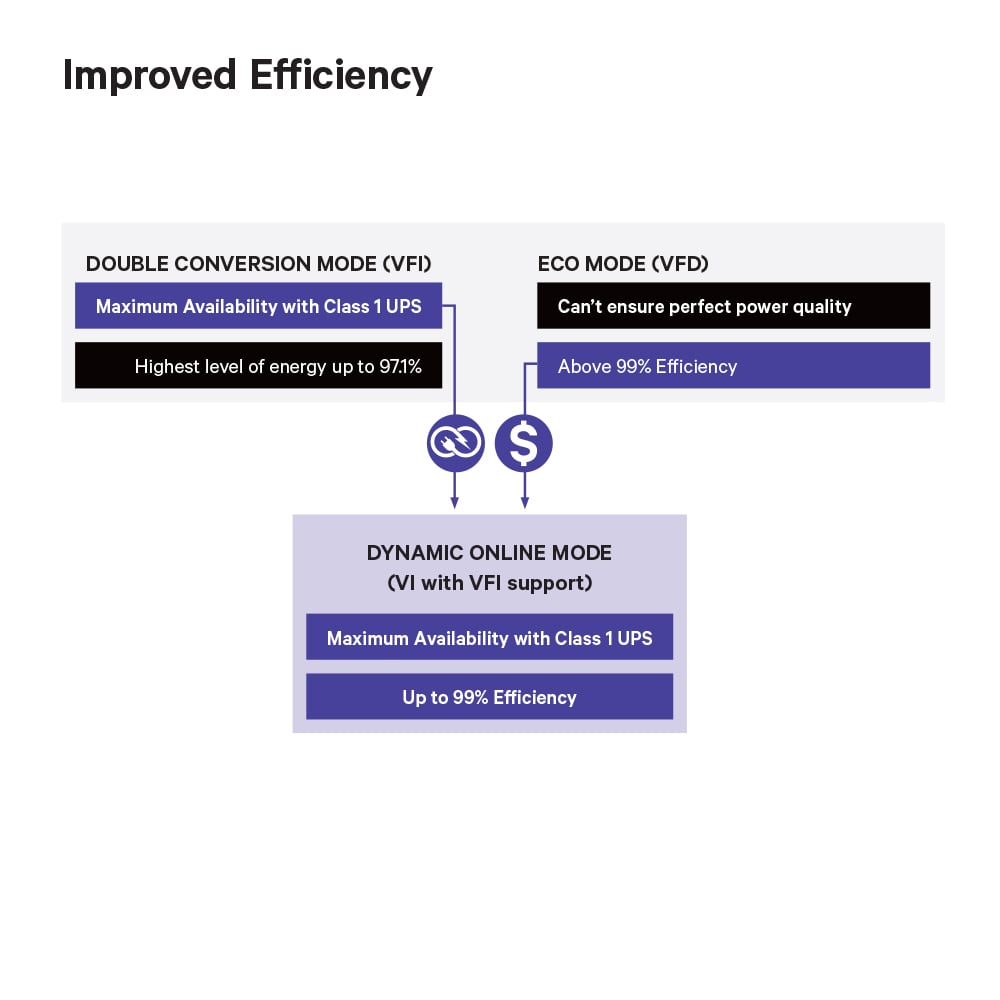 The Vertiv™ Trinergy™ UPS is a high-capacity UPS with maximized reliability and resilience, modular architecture, and high efficiency. It is ideal for the demanding requirements of large-scale applications such as AI. It can handle rapid load changes without performance degradation ensuring continuous operation. With 99% efficiency (Dynamic Online mode), it provides cost savings and reduced total cost of ownership. Available in standardized UL and CE configurations for global installations.
