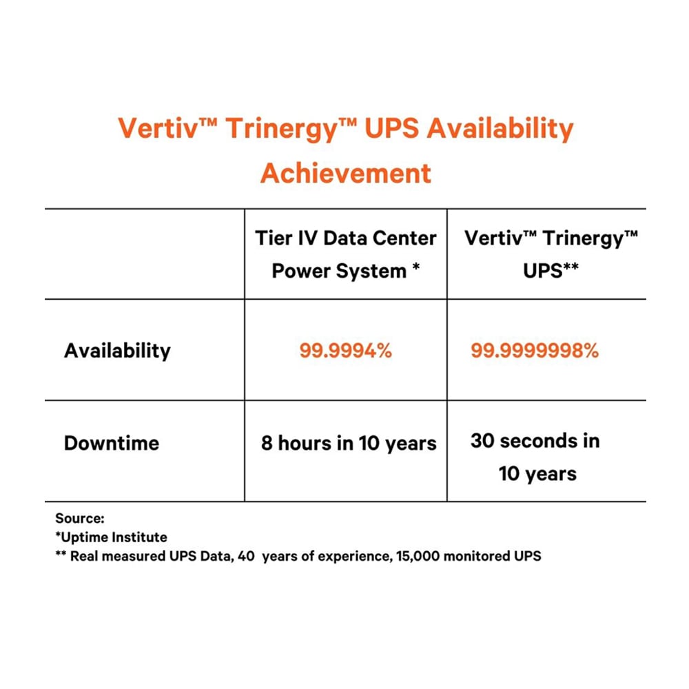 The Vertiv Trinergy UPS delivers reliable power to maintain optimal performance of large-scale data centers such as AI systems. It is a modular, scalable, and sustainable solution available globally. By integrating advanced power management and supporting new energy sources, this UPS ensures data centers can handle dynamic and intensive workloads of the future.