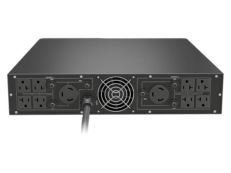 It comes with 10 power output connectors: 8 NEMA 5-15/20R and 2 L5-20R or 2 L5-30R.