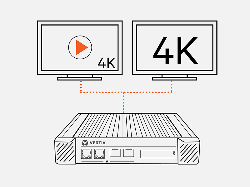 The Vertiv Avocent HMX8000 IP keyboard, video and mouse (KVM) system is a high-performance extender offering 4K video over a single fiber connection, along with audio and universal serial bus (USB). It delivers pixel-perfect, color-accurate picture quality with 4K resolution at 60Hz using the USB 2.0 specification for fast switching, making it the preferred solution for broadcasting, post production, and other applications where high resolution and zero latency are required.