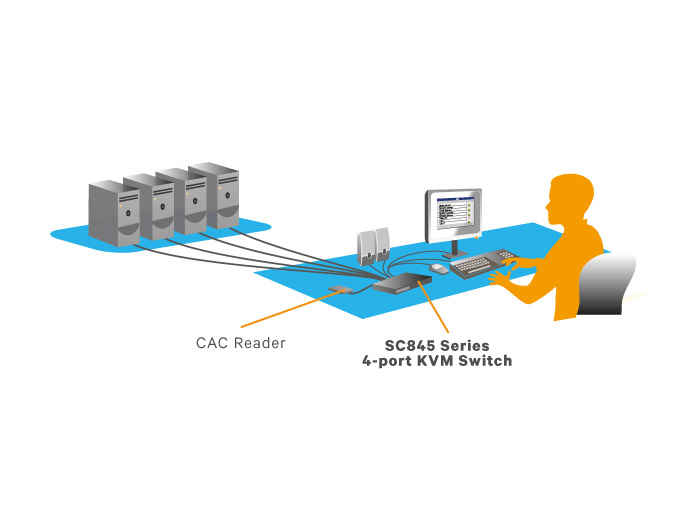 The Cybex™ SC900 series secure desktop KVM switching portfolio offers a proven solution for guarding against desktop cyber intrusion. These switches, that switch between networks at the push of a button, are certified to meet the NIAP Common Criteria Protection Profile for Peripheral Sharing Switch ver. 3.0. They provide high resolution compatibility utilizing HDMI, DisplayPort, and DVI technology. The SC900 series models support 2, 4, or 8 networks, two monitors, and CAC through a dedicated port.
