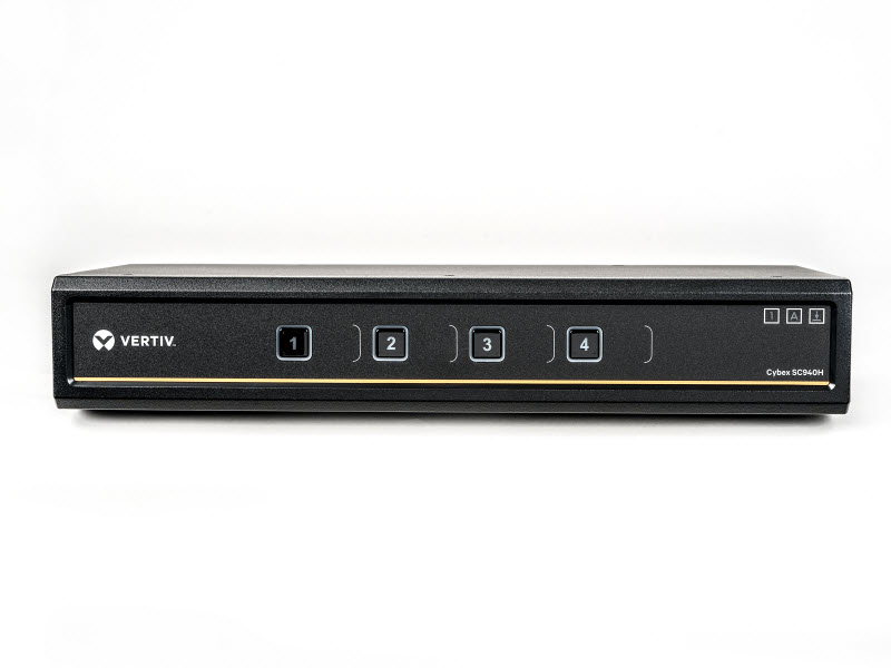 The Cybex™ SC940H secure desktop KVM is designed to meet the stringent specifications of the U.S. government and certified to the NIAP / Common Criteria Protection Profile for Peripheral Sharing Switch version 3.0.