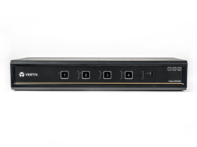 The Cybex™ SC945D secure desktop KVM is designed to meet the stringent specifications of the U.S. government and certified to the NIAP / Common Criteria Protection Profile for Peripheral Sharing Switch version 3.0.