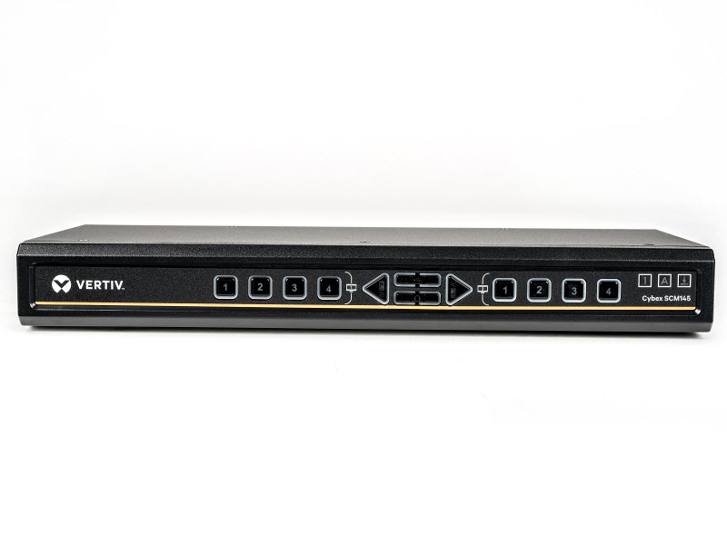 The Vertiv™ Cybex™ SCM145 secure desktop Matrix KVM switches offer a proven dual monitor solution for guarding against cyber intrusion at the desktop. These switches, that allow you to switch between up to four networks at the push of a button or switch between two networks with your cursor, are certified to meet the NIAP Protection Profile for Peripheral Sharing Devices ver. 3.0. The SCM145 switch also provides users with high resolution compatibility utilizing HDMI and traditional DVI technology.