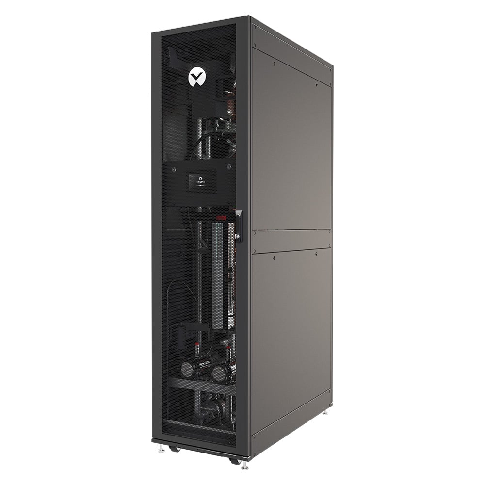 As data centers adopt liquid cooling, fitting in new cooling distribution infrastructure can be a real challenge. From hyperscale and colocation environments to edge applications, the Vertiv™ XDU simplifies your work with the flexibility to support rear door heat exchangers or direct contact liquid cooling. The Vertiv XDU’s compact footprint allows for end of row or perimeter placement. However, and wherever you incorporate the Vertiv XDU, you can easily distribute coolant to efficiently manage power-dense hot spots liquid to liquid up to 450 kW or 1,368 KW. Compact footprint for deployment flexibility within the row or perimeter; Efficient Cooling Distribution to manage power-dense hot spots and up to 450 kW or 1,368 kW; Precise Temperature Control to eliminate thermal shock for server CPU and GPUs; Redundant Pumps and Dual Power Feeds for optimizing reliable operation; Remote Monitoring available through communications with HTTP, SNMP, RS-485 Modbus, Modbus IP.