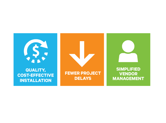 Simplified vendor management occurs when accountability regarding quality installation is had by a single source of expertise • Fewer costly project delays happen when installation of any manufacturer’s equipment is properly engineered and executed • Optimized system performance is achieved when your ideal configuration is determined at the time of installation • Enhanced use of internal staff is possible as installation projects are managed by external industry and equipment experts