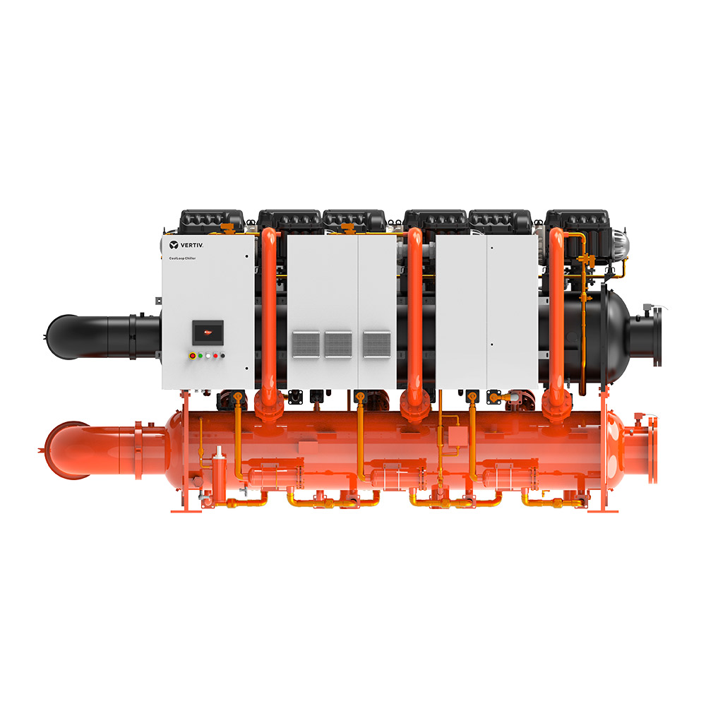 Vertiv CoolLoop Chiller Water cooled oil free centrifugal chiller addresses the high-density heat dissipation and energy efficiency management needs of data centers, utilizing magnetic levitation bearings, permanent magnet synchronous motors, and AI intelligent control technology to achieve mechanical friction-free operation and dynamic energy efficiency optimization. The chiller is compatible with vertical/horizontal/series or parallel water circuit deployment and occupies 40% less in floor space, suitable for both renovation of old server rooms and construction of new intelligent computing centers. Through high-efficiency heat exchange and variable frequency regulation technology, it supports continuous load adjustment in the range of 10%-100%. Combined with oil-free design and a long-lifespan architecture, it significantly reduces the total life cycle operation and maintenance costs, providing stable heat dissipation for GPU clusters and AI computing power centers.