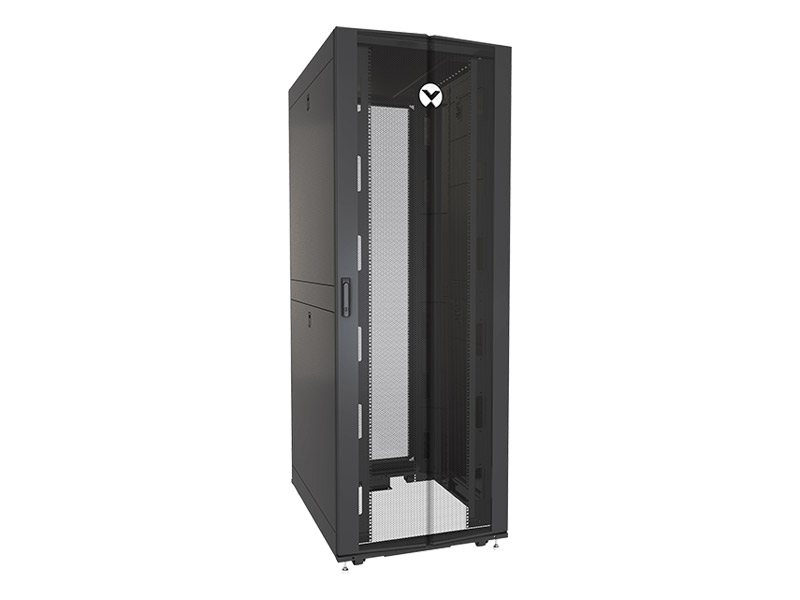 All Vertiv™ Racks come complete with keys and a hardware kit that includes 50 M6 cage nuts and screws, a cage nut installation tool, edge protection for top panel cable entry, a T30 / Phillips L key and T30 extension driver. All models feature a single 77% perforated locking front door, split 77% perforated locking rear doors, two pairs of split locking side panels, a high-density cable entry top cover (2000 Cat 6 cables), two sets of 19” EIA rails and two full height rack PDU Mounting /cable management brackets (one per side). The Vertiv™ Rack is built with low-profile casters and leveling feet, baying brackets and bolt-down brackets. VR with SP ship with 2000 lb. rated shock packaging. VR with TAA is TAA Compliant. *Nominal dimensions, reference submittal drawings for exact dimensions.