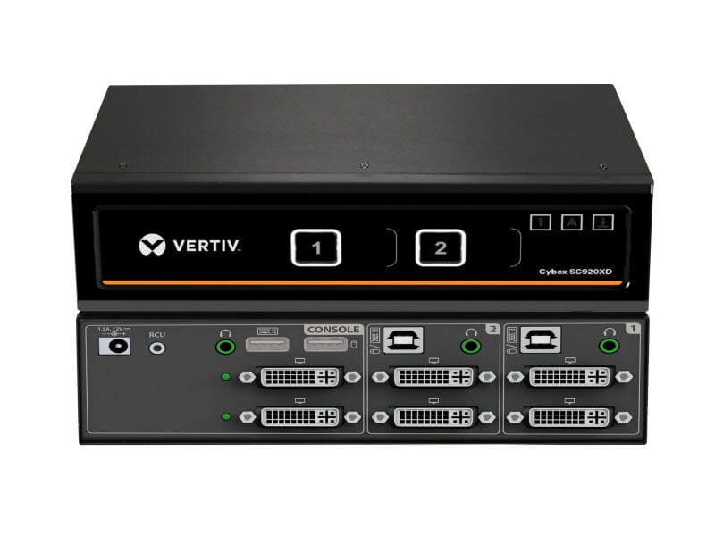 The Cybex™ SC920XD secure desktop KVM is designed to meet the stringent specifications of the U.S. government and certified to the NIAP / Common Criteria Protection Profile for Peripheral Sharing Switch version 3.0.
