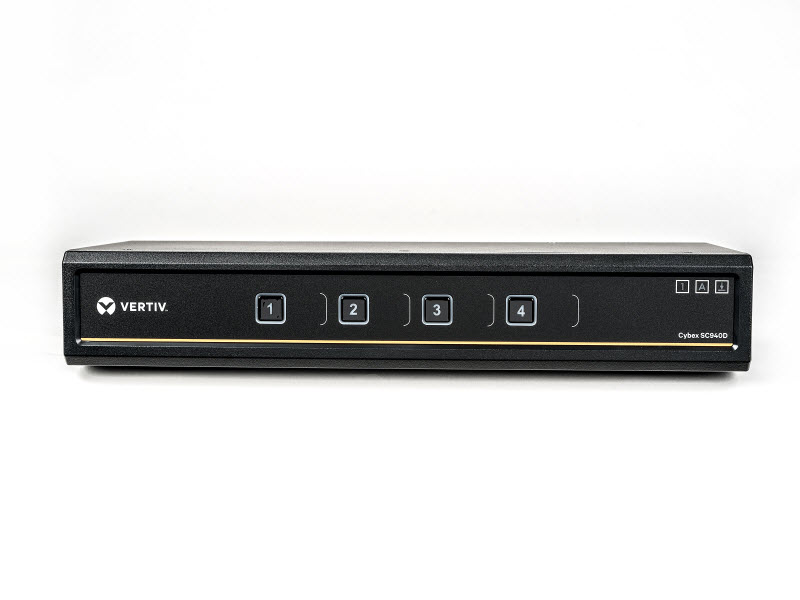 The Cybex™ SC940D secure desktop KVM is designed to meet the stringent specifications of the U.S. government and certified to the NIAP / Common Criteria Protection Profile for Peripheral Sharing Switch version 3.0.