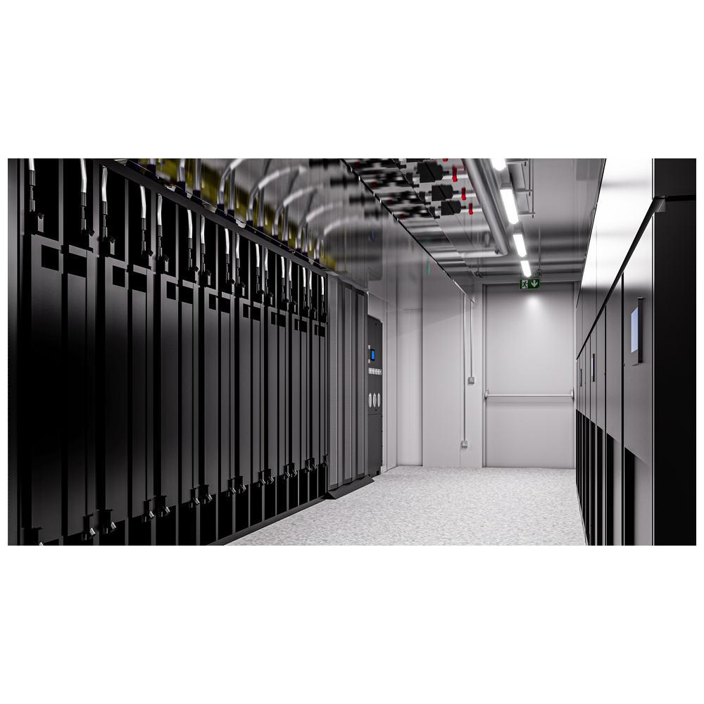 - PREFABRICATED, MODULAR SOLUTION: Deployed as a standalone modular data hall, minimizing on-site labor, reducing deployment time, and ensuring consistent quality.