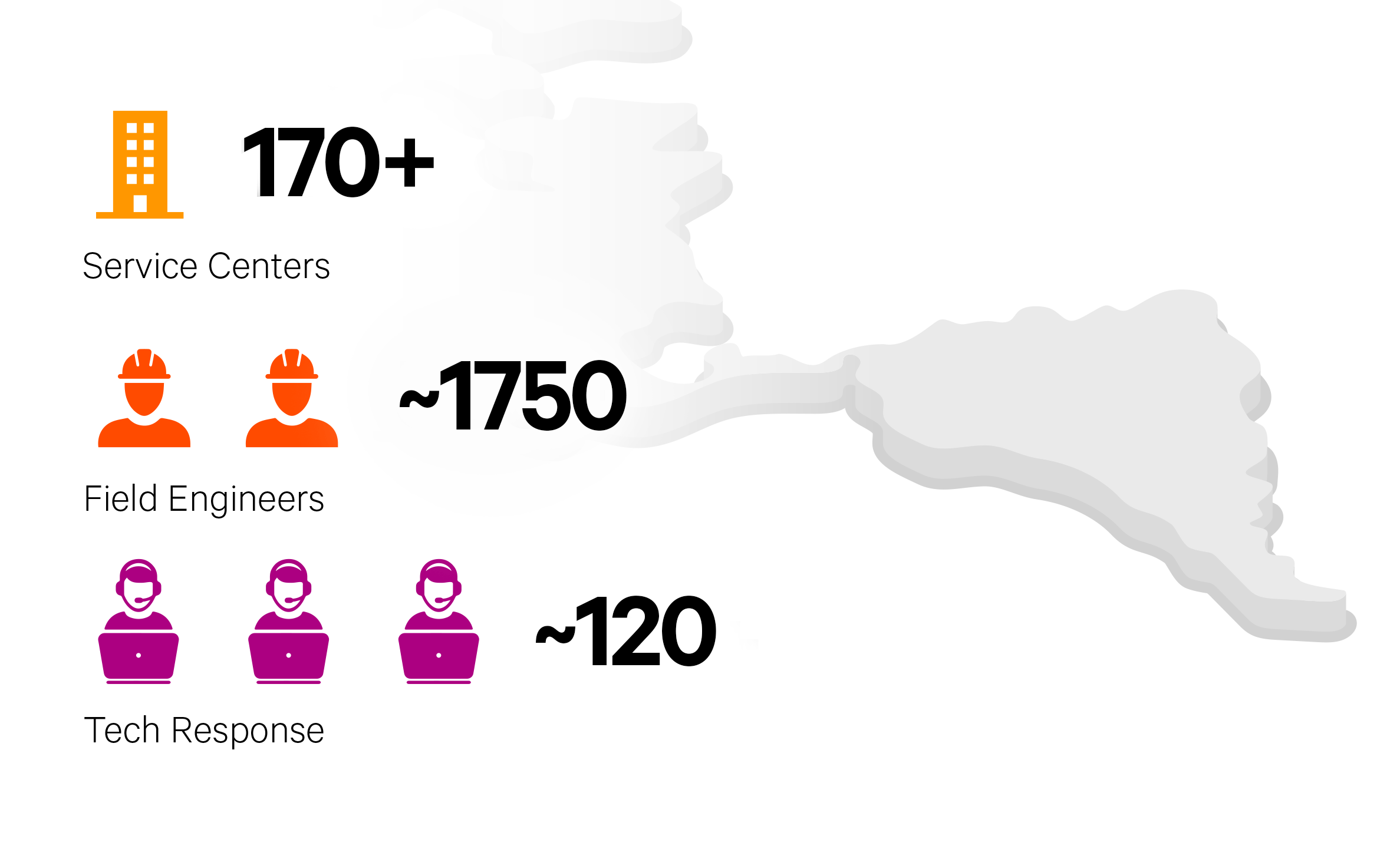 - R : Les techniciens experts sont responsables de l’installation et de la maintenance proactive et sont soutenus par un vaste réseau d’entrepreneurs agréés pour une prestation de services optimale.