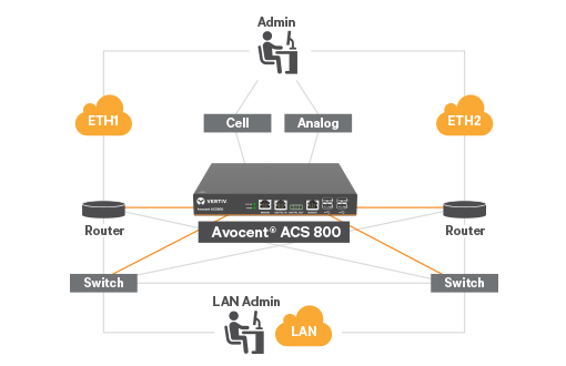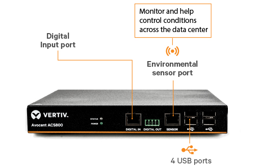 The Avocent ACS 800 serial console system takes Vertiv’s renowned enterprise class technologies utilized in data centers around the world and packages the key features into an exciting compact and cost effective form factor. The ACS 800 provides serial access, environmental monitoring, IoT integration and remote networking capability to edge-oriented market sectors including financial institutions, retail chains and education.