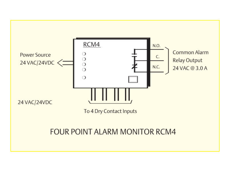 Four point monitor for any combination of environmental, power, and UPS systems, or other dry contact inputs